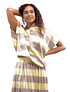 Yellow and powder striped loose top.